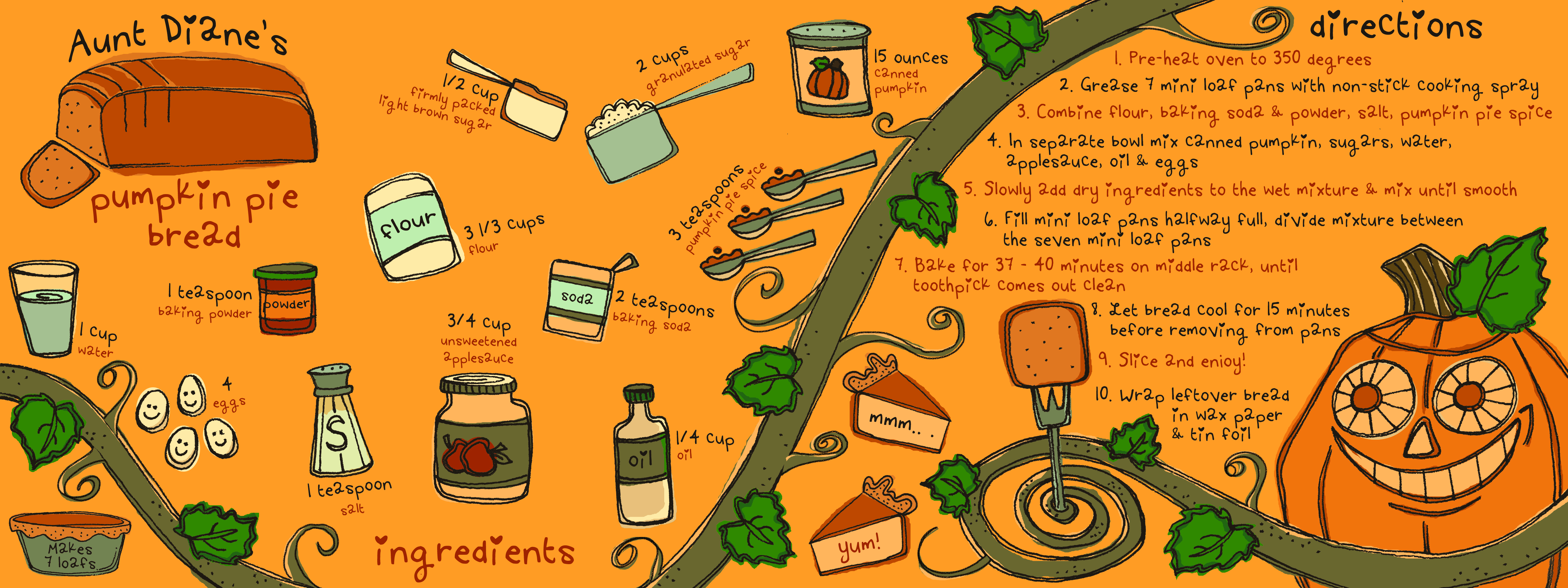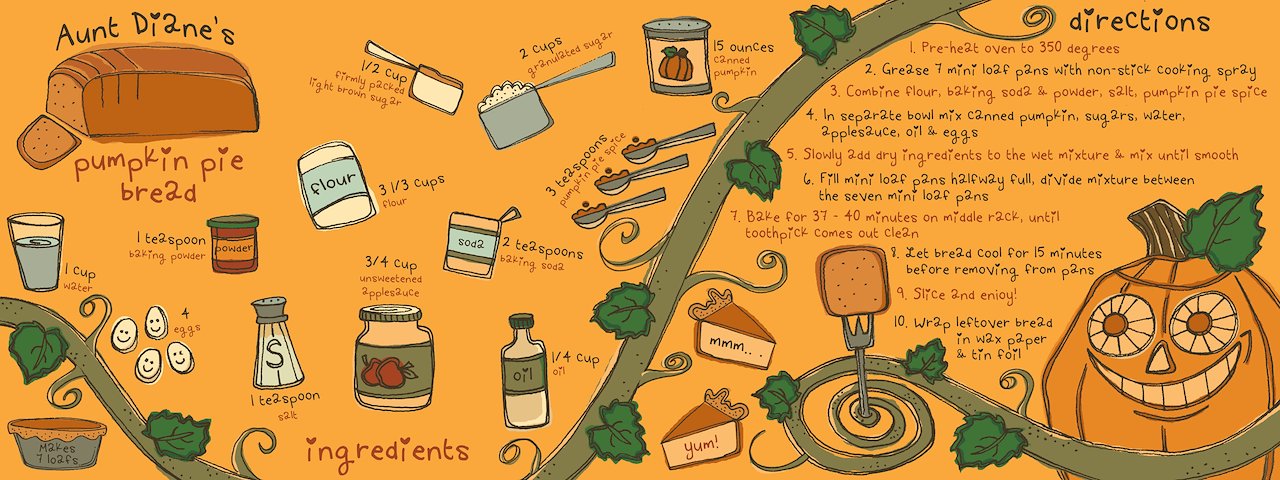 aunt diane's pumpkin pie bread | ink and digital paint